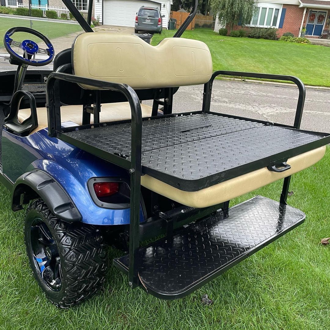 Featuring a rear flip seat, this cart offers versatility and extra seating capacity. Whether you’re transporting golf bags or enjoying a ride with friends and family, this feature ensures everyone’s comfort.